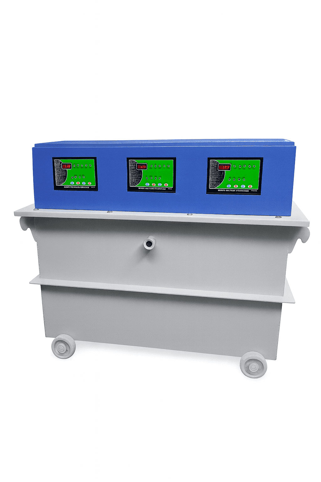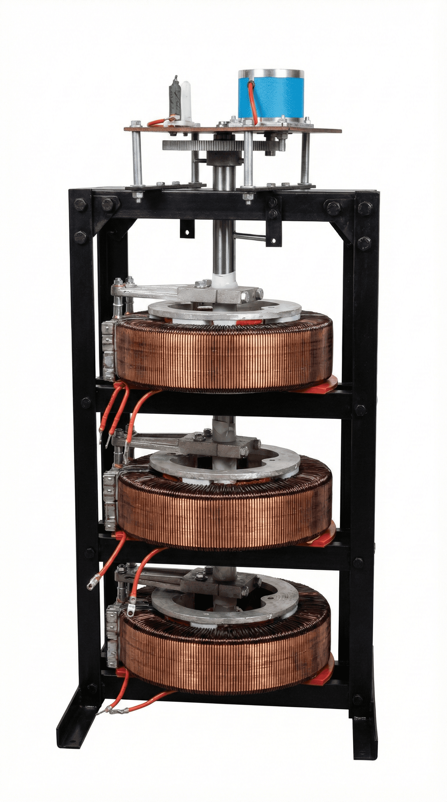 Precision voltage control from 0V to 270V. Equipped with high-torque AC synchronous motors for automated testing and stabilization.